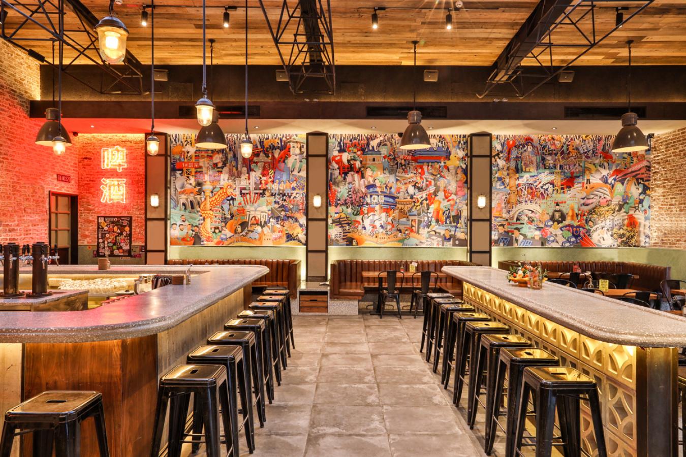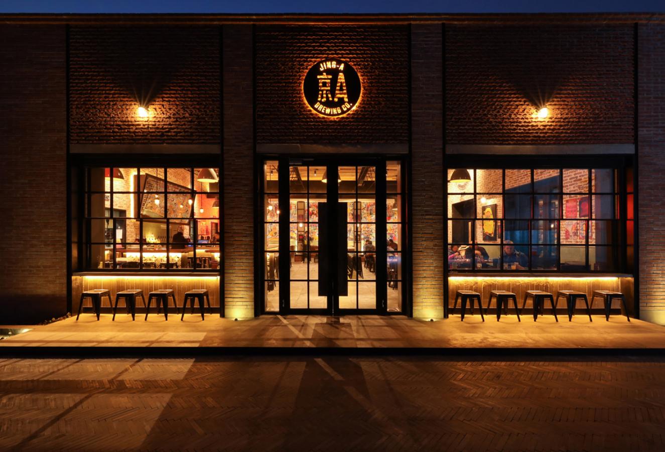 Jing A, a local Beijing Craft beer brand, had just received an influx of capital from Danish Beer Giant, Carlsberg, and was looking to create a new Tap room in the heart of Beijing’s Dongcheng District. Taking an existing building within the Long Fu Si complex, NAO opened up large windows, and skylights to bring in more natural light and to emphasize the factory like space. In addition NAO redesigned the façade to create a Red brick and steel exterior where details of broken bricks harkened back to Jing A’s First location that was set within an originally NAO designed Space. In contrast to the exterior the interior is a combination of distressed plaster on brick walls with a highlight Art Mural by Leon Fenster a British born Beijing resident whose work addresses the Beijing community with countless details specific to the Jing A beer brand and their storied past.